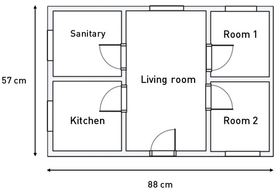 Additionally, the experimental studies were conducted under two different overall thermal conditions: a controlled environment (room air-conditioning set at = 26 C) and an uncontrolled environment (no air-conditioning activated). The model’s exterior windows and doors were adjusted accordingly, being fully open or closed based on the specific scenario requirements. Moreover, the lighting conditions were varied, with lights being partially illuminated (50%) or fully illuminated (100%).