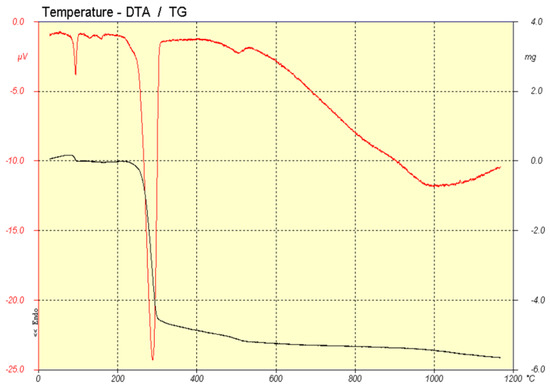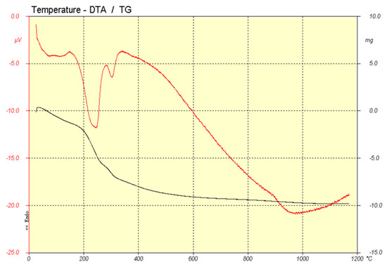 Thermal analysis was carried out using TG-DTA (Thermogravimetric Analysis–Differential Thermal Analysis) equipment (BÄHR STA503) featuring a Pt crucible, and the samples were heated at a rate of 5 °C per minute in an air atmosphere.