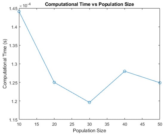 The computational time was analyzed across different population sizes for the dragonfly algorithm, providing insights into how the algorithm’s performance scaled with the number of individuals in the population. Figure 7 illustrates that the computational time was particularly efficient with a population size of N = 30.