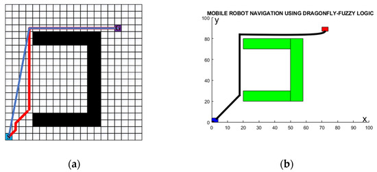 Comparison of A*–greedy algorithm with dragonfly–fuzzy algorithm: (a) A*–greedy algorithm [45]; (b) dragonfly–fuzzy algorithm.
