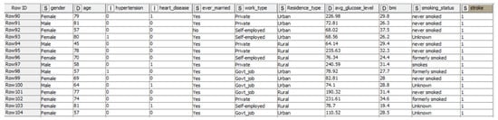 The open dataset [18] is used for the testing of the ML algorithms, focusing attention on stroke prediction. The dataset is available in the Kaggle dataset repository [18] as a .csv file containing 5110 observations with the following 12 attributes: