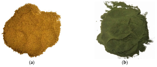 (a) Chlorella powder (≤0.5 mm) and (b) Microchlorella powder (≤0.063 mm).
