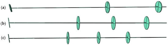 The main rod’s diameter was 1.5 mm, its plates’ diameter was 4.5 cm, and their thickness is 1.5 mm. Three times the plates’ diameter, or 13.5 cm, separates them from one another. It has three dimensions, each 40, 60, and 70 cm in length. In Figure 3, all three models are displayed.