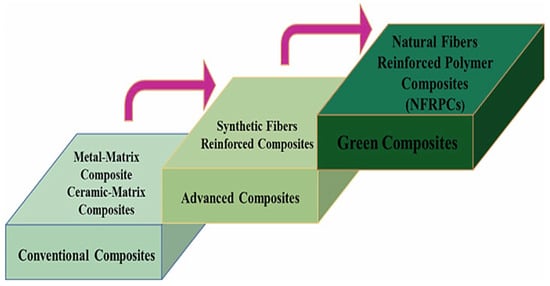The high carbon emission and expensive cost of the synthetic fibers, as well as the amount of fiber waste available, limit their use. For these reasons, natural fibers are an efficient and cost-effective replacement for synthetic fibers, with lower environmental impact. Figure 1 shows how construction has moved from conventional composites to green composites.