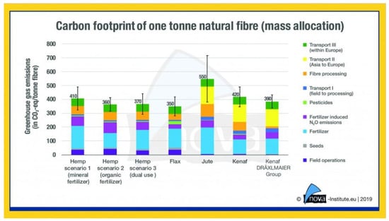 Comparing the carbon footprints of natural fibers of 4 different natural fibers: hemp, flax, jute, and kenaf [24].