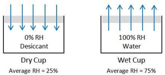 - Mustapha, R.; Zoughaib, A.; Ghaddar, N.; Ghali, K. Modified upright cup method for testing water vapor permeability in porous membranes. Energy 2020, 195, 117057. [Google Scholar] [CrossRef]