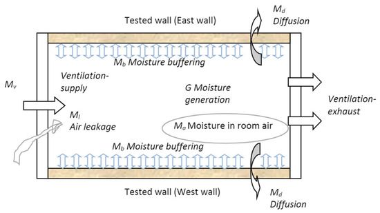 - Yang, X.; Fazio, P.; Ge, H.; Rao, J. Evaluation of moisture buffering capacity of interior surface materials and furniture in a full-scale experimental investigation. Build. Environ. 2012, 47, 188–196. [Google Scholar] [CrossRef]