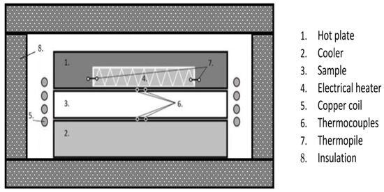 - Calnesis, L.; Mesure de Conductivité Thermique. Laboratoire Calnesis. Available online: https://www.calnesis.com/mesures/conductivite-thermique/ (accessed on 28 March 2024).