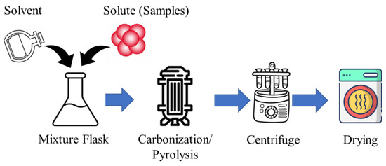 The process flow diagram of carbonization/pyrolysis-assisted CD synthesis.