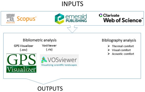 This paper carries out bibliometric and bibliographic analyses to answer the declared research questions. This systematic literature review allows us to understand how research on the subject is being conducted. The bibliometric analysis enables a quantitative approach to be taken to the subject, making it possible to identify trends and the growth of knowledge. With the bibliographic analysis, using a qualitative approach, it is possible to identify, evaluate, and synthesize the evidence of environmental comfort by reading the content of selected articles. Hence, data are to be collected through database searches and a descriptive analysis of the selected articles. A classification structure is to be suggested for the reviewed papers. All the material obtained is to be analyzed to understand the behavior of research on the subject.
