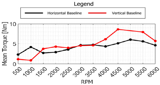 Torque mean value comparison between Horizontal “Baseline” and Vertical “Baseline”.