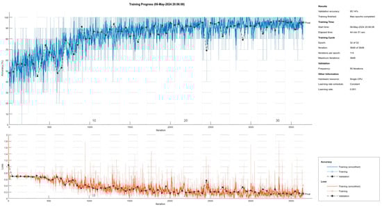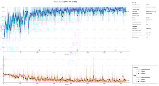 To facilitate a detailed analysis of the training outcomes, the Deep Network Designer software (version 23.2) was employed. This tool helped visually represent the structure and distribution of the dataset, as well as the training progress of each model, enabling a comprehensive evaluation of the models’ performance across different computational platforms.