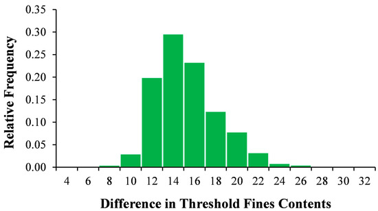Distribution of differences between upper- and lower-bound threshold fines contents.