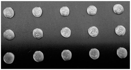The grease application process consists of three components. The first component is a pneumatic pump. This pump presses down on a grease-filled container at a pressure of 50 bar. The pressure causes the grease to turn into a non-Newtonian liquid. The liquefied grease is then passed through the second component, a grease pressure regulator. This pressure controller is used to regulate the pressure of the liquid to a set point. At the outlet of the pressure controller’s output, the grease flows into the third component, a pulsing valve. The pulsing valve contains a heater and a pressure sensor. The pulsing valve releases the grease after a pneumatically controlled pin is moved by a pressure of 8 bar. The pin can be tensioned by a tension spring using a knob. When the pin is released, grease can flow out of the valve opening. When the pin is closed, the material stops flowing. Typical opening times vary from 4 ms to 20 ms. The result of a grease application is shown in Figure 2.