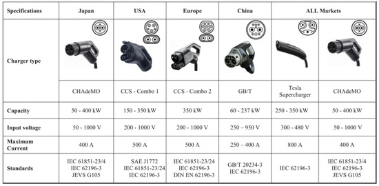 Socket types for electric vehicle charging in direct current (DC) [24,25,26,27,28,29,30,32].