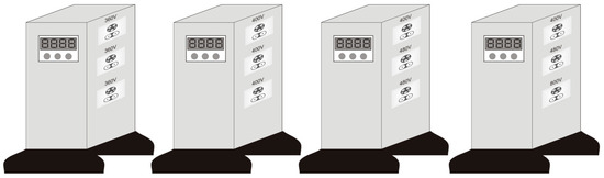 The charging station layout engineering is based on a modular functioning that can be replicated and enlarged depending on current requirements. As we have mentioned before, the basic unit is a charging pole with four sockets, one per power supply; this configuration permits the charging of four electric vehicles simultaneously, provided the charging power requirements are different for each one, with a slow (22 kW), medium (48 kW), fast (96 kW), and extra fast (180 kW) charging rate. The supply voltage range is 360 to 800 V. Table 7 summarizes the main characteristics of the charging station layout.