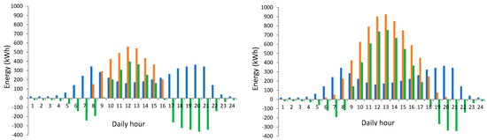 The energy demand depends on the number of charging points, the maximum power supply at every charging point, the daily operating time, and the daily occupancy factor. Considering a charging pole with four charging points, one per power supply, a 14 h daily operating time, and a 75% occupancy factor, the daily energy demand is as follows (Table 3):