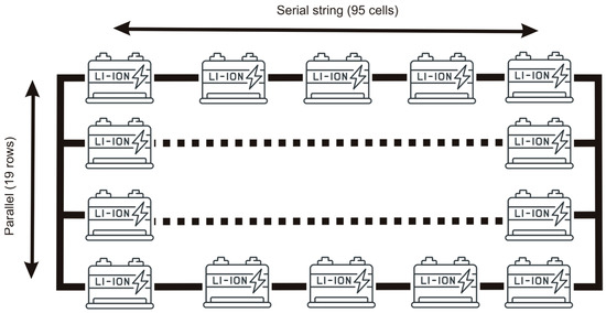 Repeating the process for the current, considering the maximum power supply required by the charging station (Table 3), the number of parallel strings is as follows: