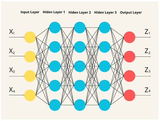 If more layers are added to the NN and the number of layers is greater than three, this NN could be named as a DNN. This happens because DNNs are a kind of NN; however, DNNs have more hidden layers compared to NNs, as can be seen in Figure 12. Due to their greater number of layers, DNNs are capable of learning more complex data structures than traditional NNs. According to Deng [20], deep learning (DL) is a subset of ML techniques that utilizes multiple layers of information processing in hierarchical architectures, which are leveraged for pattern classification and feature or representation learning. However, the training of DNNs requires a greater amount of data and computational capacity, such that the adjustment of the hyperparameters is carried out in the best way where the error is as small as possible. In aeronautical engineering, DNNs have the same applications as NNs; however, their greater capacity is highly desired.