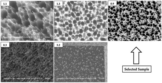 After all the recipes were executed with the ratios specified, including all the variables, it was possible to acquire the following images via SEM (Figure 15, Figure 16, Figure 17 and Figure 18).