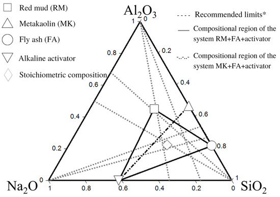Ternary diagram to obtain the mass percentages of geopolymers. * Davidovits et al. [30].