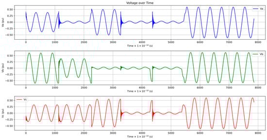In three-phase electrical power systems, the fault types include interruptions and short circuits. Short-circuits can further be categorized into single-line-to-ground faults, line-to-line faults, double-line-to-ground faults, three-line faults, and three line-to-ground faults []. ML techniques are adept at addressing these types of faults, ensuring high accuracy and reducing the duration of power outages, thus contributing to the overall sustainability of electrical power distribution systems [,].