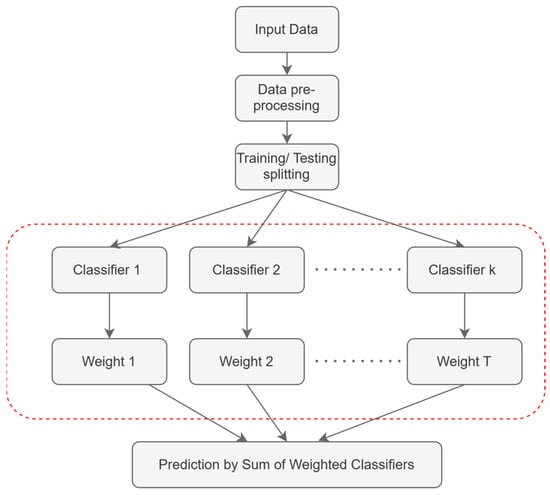 The final prediction is made by aggregating the predictions from all classifiers: