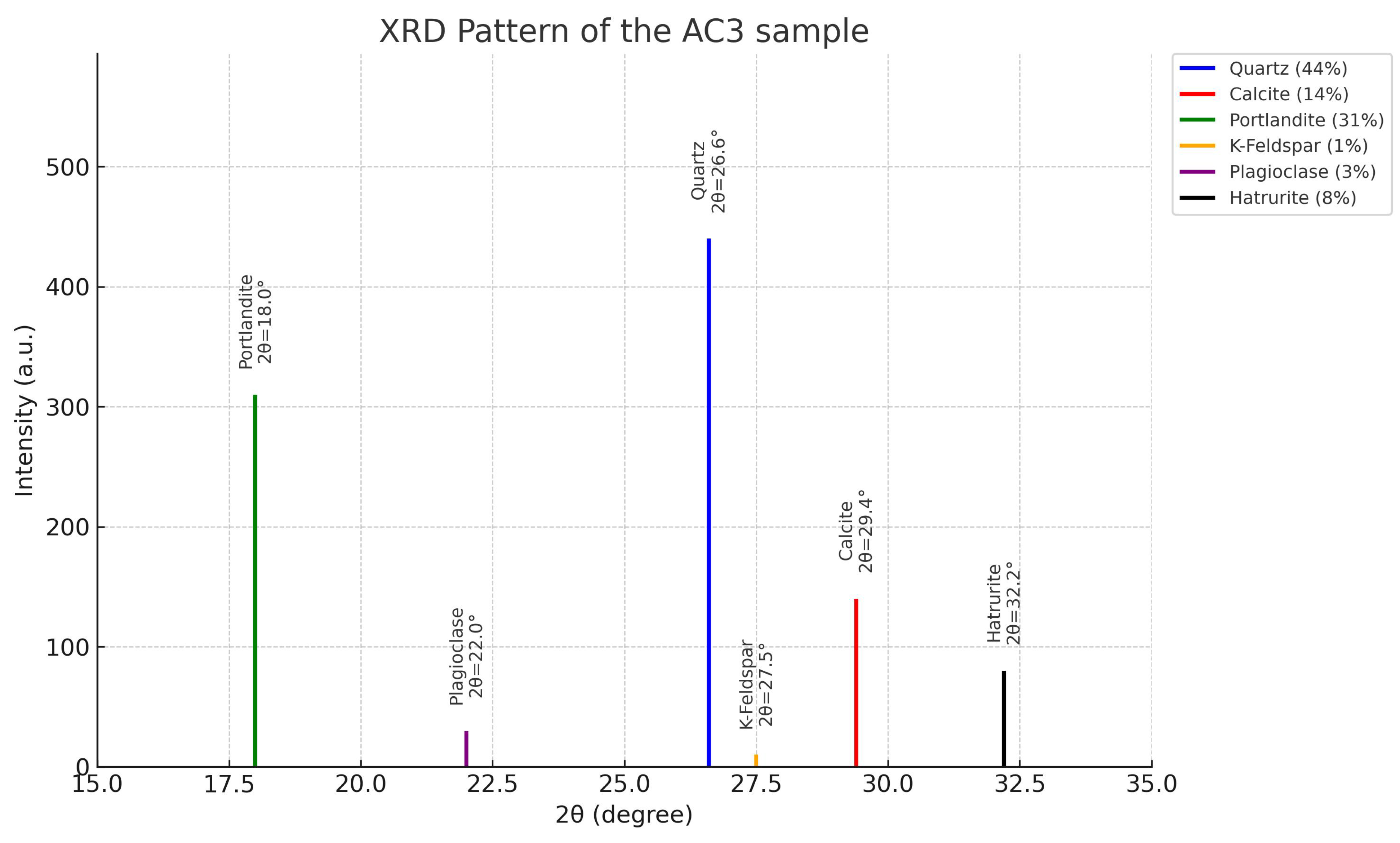 To determine the reasons for the increased strength and stability of the aerated concrete product, the mineralogical compositions of the crystalline phases of the control sample (