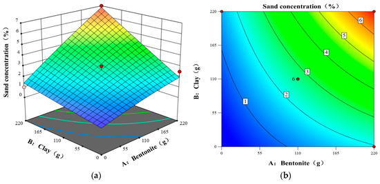 - The response surface methodology yielded an optimized slurry ratio (water–bentonite–Na2CO3–clay–CMC = 1000:220:32:110:1), demonstrating superior performance characteristics, namely, a viscosity of 29 s (45% improvement), a specific gravity of 1.20 g/cm3, and a sand content of 3%, along with 30% faster film formation and 38 ± 2% reduced filtration loss compared to conventional formulations. In contrast, high-clay formulations (e.g., 220:0, Group e) increased specific gravity but reduced film uniformity, while CMC-deficient groups (e.g., 110:0, Group b) exhibited 20–25% higher filtration loss. Field validation showed that these parameters effectively balanced stability and workability requirements for saturated sand conditions.