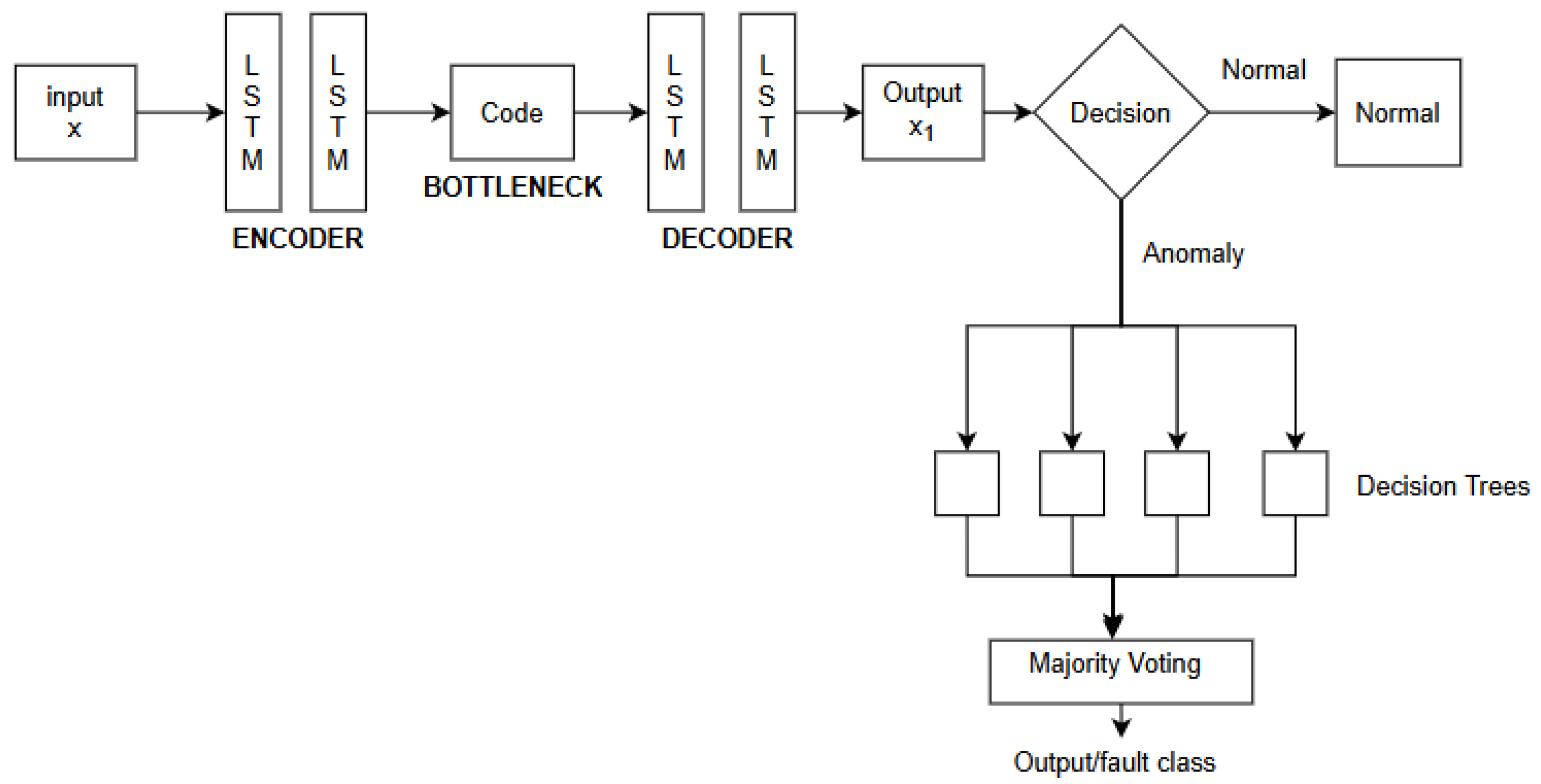 23]. During training, the model is only exposed to healthy operation data. At inference time, reconstruction errors are calculated; unusually large errors indicate sequences that deviate from learned healthy patterns and may signal a fault [