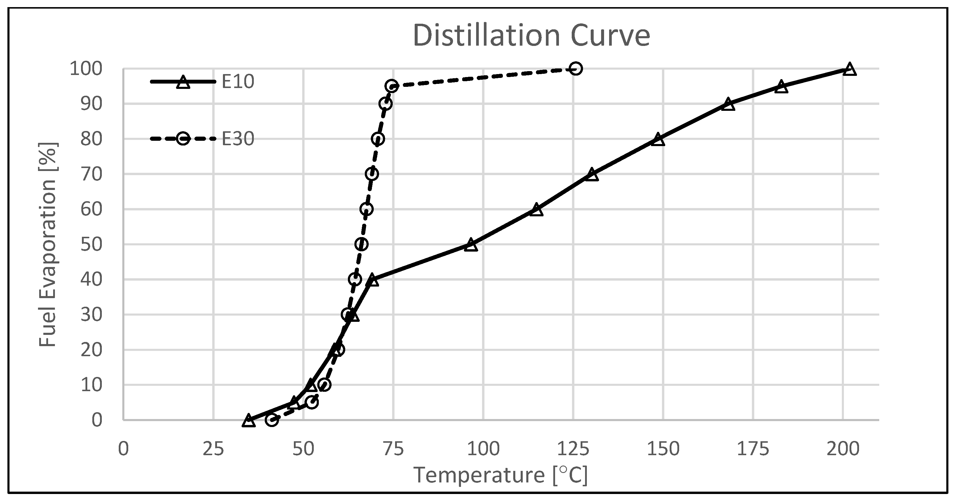 - EN 228:2025; Automotive Fuels—Unleaded Petrol—Requirements and Test Methods. European Committee for Standardization (CEN): Brussels, Belgium, 2025.