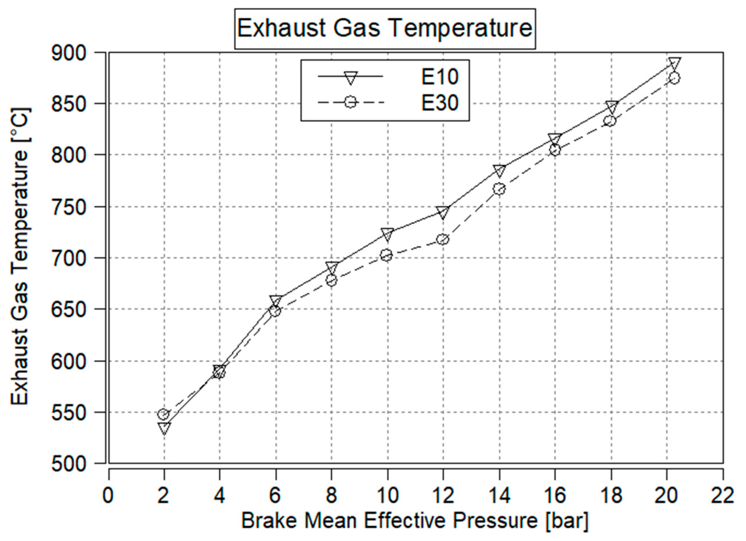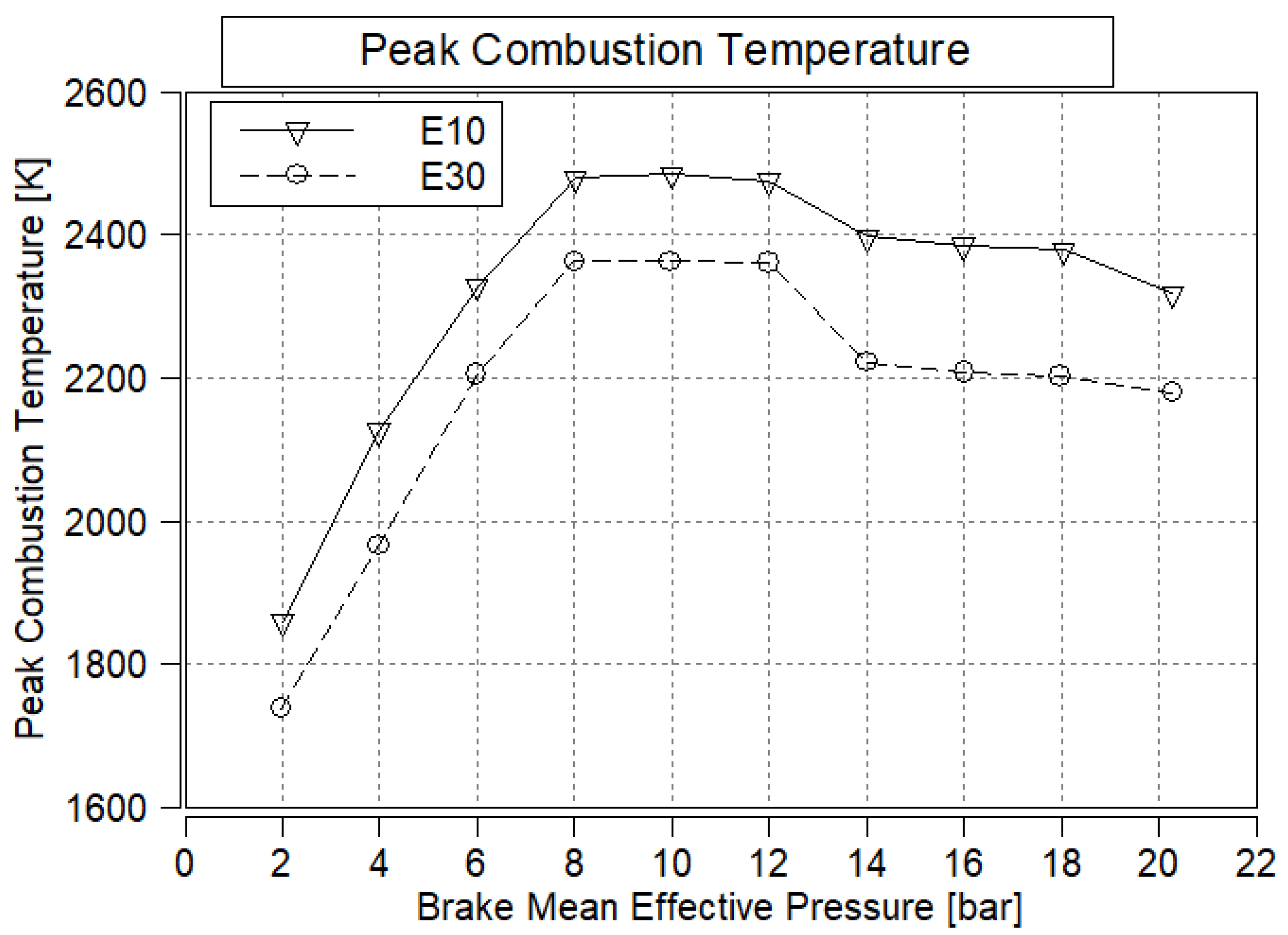 - EGT and peak combustion temperature are expected to decrease due to the higher latent heat of vaporization of ethanol, which effectively reduces the combustion temperature.