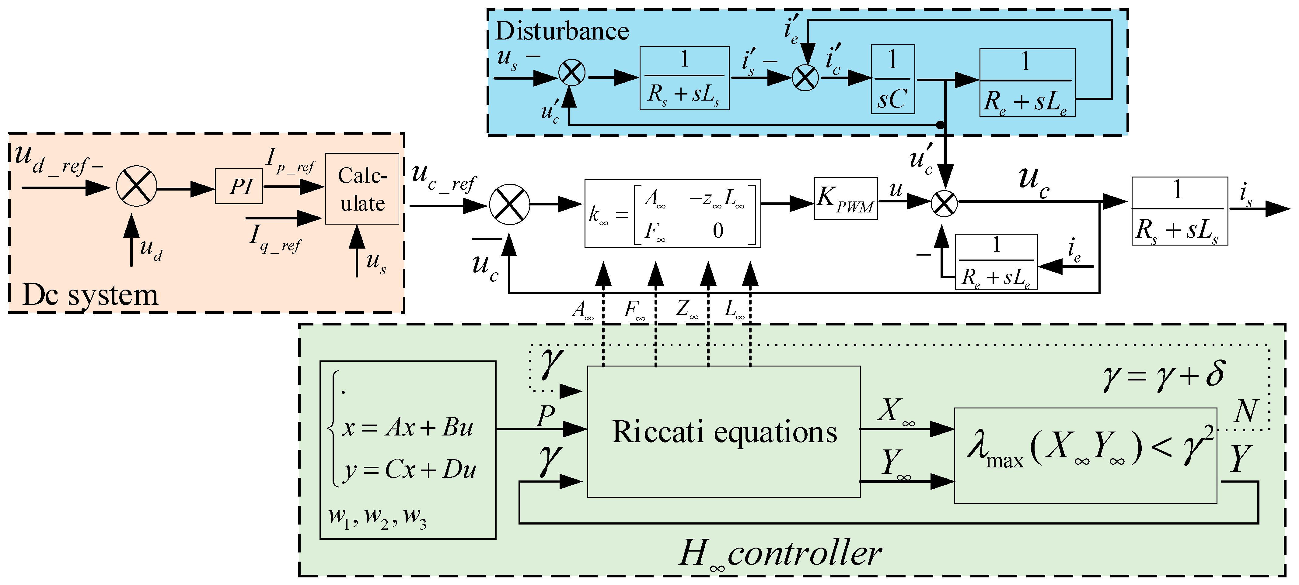 To surmount these in the presence of uncertainties and disturbances, HMGs rely on tailored strategies like adaptive, resilient, or hierarchical controls [12,13]. Traditional linear controllers, tuned to nominal points, falter across HMGs’ broad operating envelopes, exacerbated by model inaccuracies, component drifts (for instance filter inductances), and unmodeled nonlinearities. Robust control theory emerges as a robust antidote, explicitly accounting for parametric uncertainties and external perturbations to guarantee bounded performance. Also, external disturbances are among the most critical factors that can degrade the accuracy and efficiency of controllers. In MGs, disturbances may arise from both internal and external sources, each directly influencing system stability. Several studies have specifically focused on enhancing operational stability by mitigating or eliminating such disturbances [14].