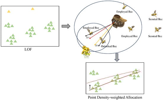 The LOF is an algorithm used to identify outliers (anomalous points) within a dataset [51]. Outliers typically refer to data points that are significantly different from the majority of other data points in the dataset [52]. The basic idea of the LOF algorithm is to determine whether a data point is an outlier by comparing its local density to the local densities of other points within its neighborhood, as shown in Equation (5).