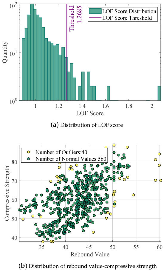 Outlier detection is a statistical process aimed at identifying rare events or abnormal activities that differ from the majority of data points in a dataset [49]. Outlier detection encompasses two conventional types: global and local. Global outliers fall outside the normal range of the entire dataset, whereas local outliers may be within the normal range of the entire dataset but exceed the normal range of the surrounding data points [50]. Since experimental data are directly sourced from on-site operations, it is inevitable that outliers will be produced, making the screening of outliers particularly important. Especially for data from different laboratories and regions, it is necessary to conduct local outlier detection.