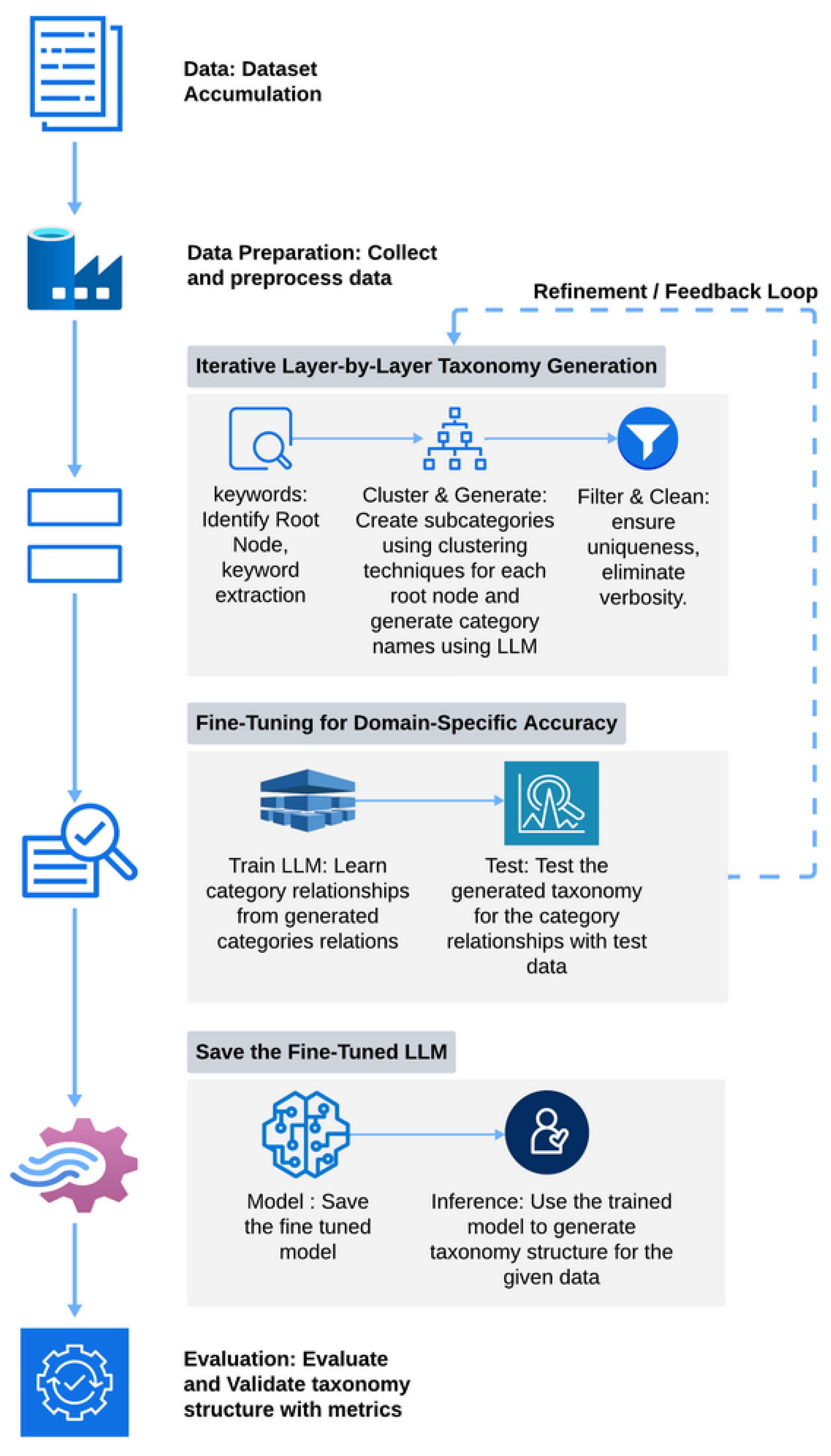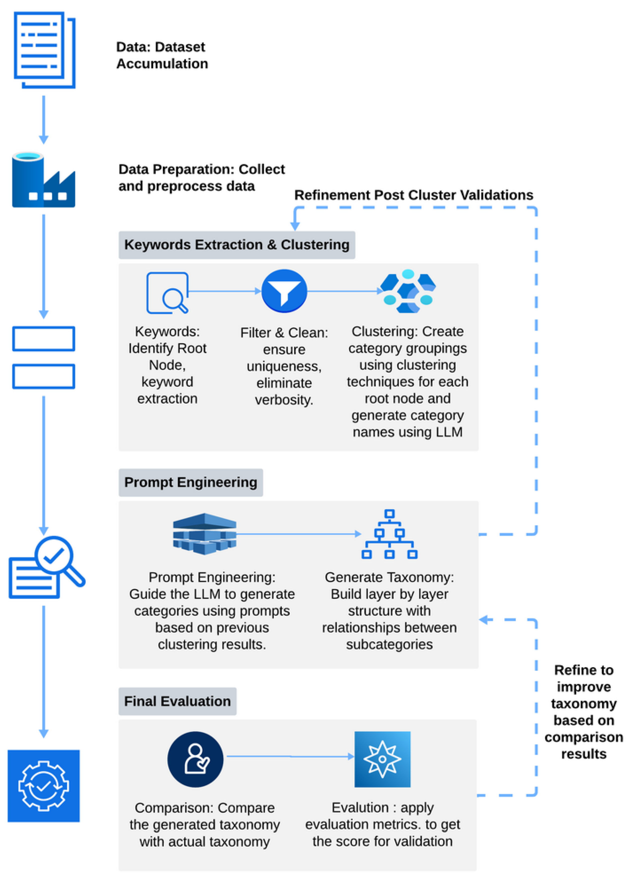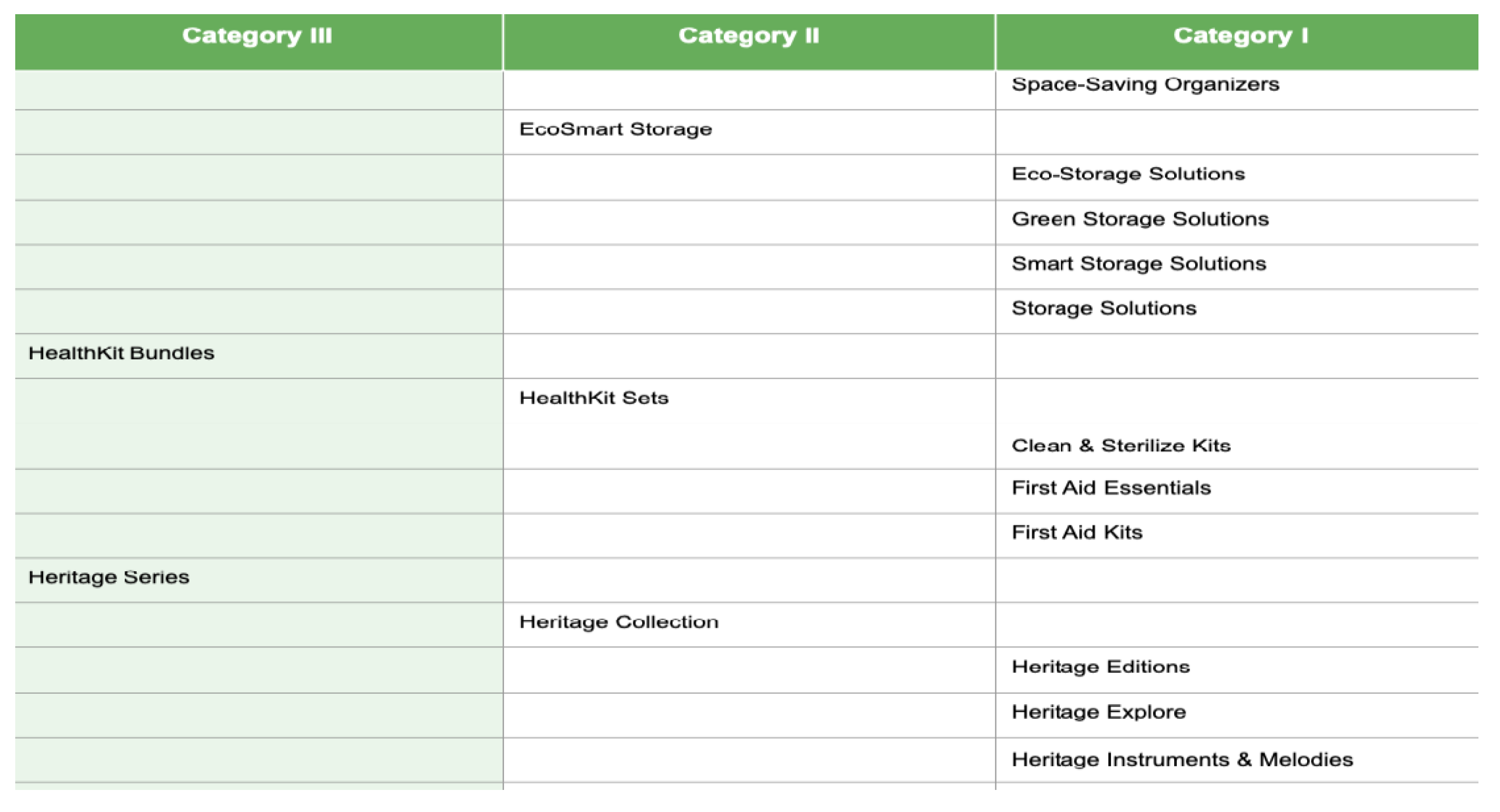 - Level 3 (Category III) Generation: The iterative process was repeated one final time. Products were grouped according to their assigned Category II names. For each of these broader groups, a prompt containing the relevant Category II names was sent to the LLM, requesting the generation of the most general top-level Category III name appropriate for that collection of categories.