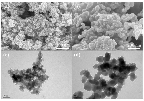 (a,b) SEM and (c,d) TEM images of C-Daba. Reproduced with permission from [32].