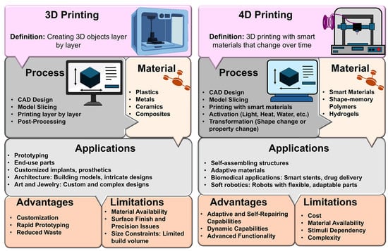 - Hassan, M.; Mohanty, A.K.; Wang, T.; Dhakal, H.N.; Misra, M. Current Status and Future Outlook of 4D Printing of Polymers and Composites-A Prospective. Compos. Part C Open Access 2025, 17, 100602. [Google Scholar] [CrossRef]
