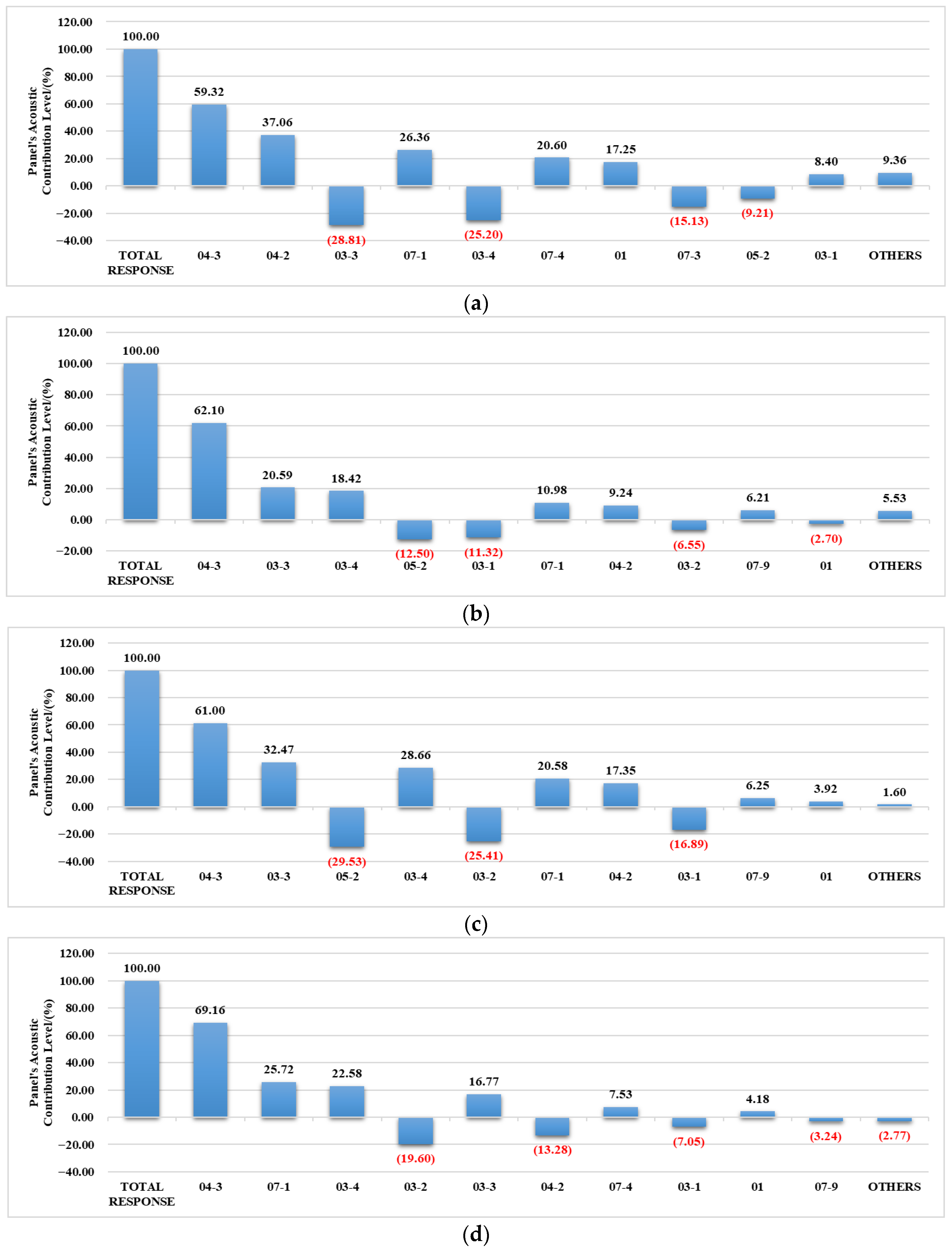 6] conducted a contribution analysis of in-vehicle low-frequency noise. By using an experimental method combined with a calculation method for quantifying airborne noise sources, they obtained the contribution of vehicle body panels to in-vehicle noise and the sound pressure contribution near specific field points [
