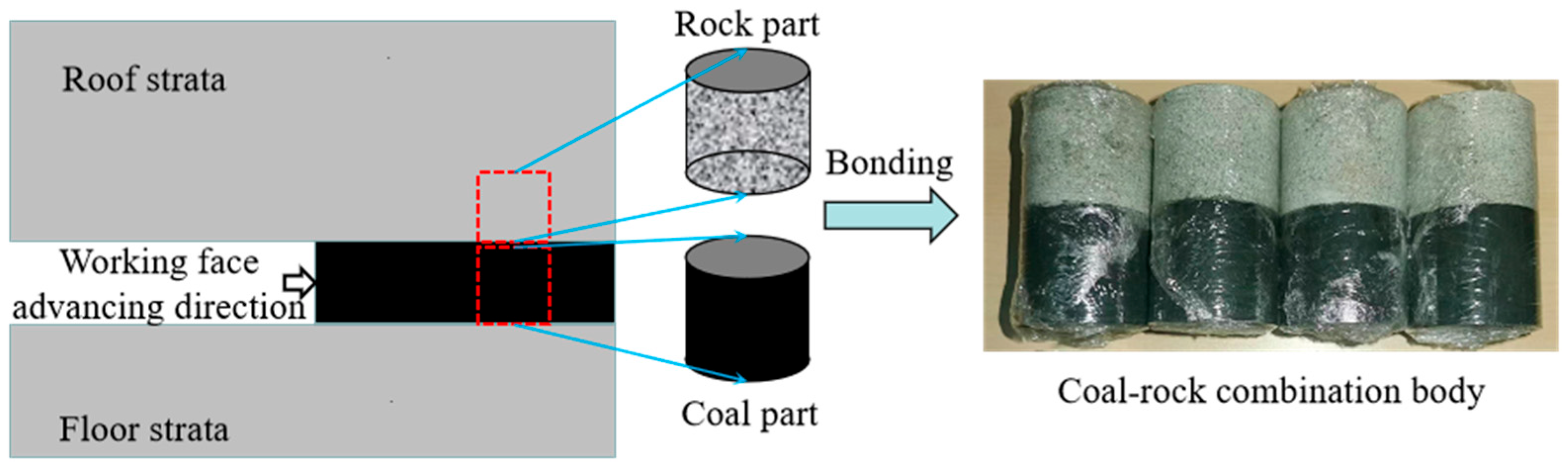- Xu, C.; Yang, T.; Wang, K.; Yuan, Y.W.; Guo, L. Influence of primary interface characteristics on mechanical properties and damage evolution of coal-rock combination. Eng. Fail. Anal. 2024, 164, 108658. [Google Scholar] [CrossRef]