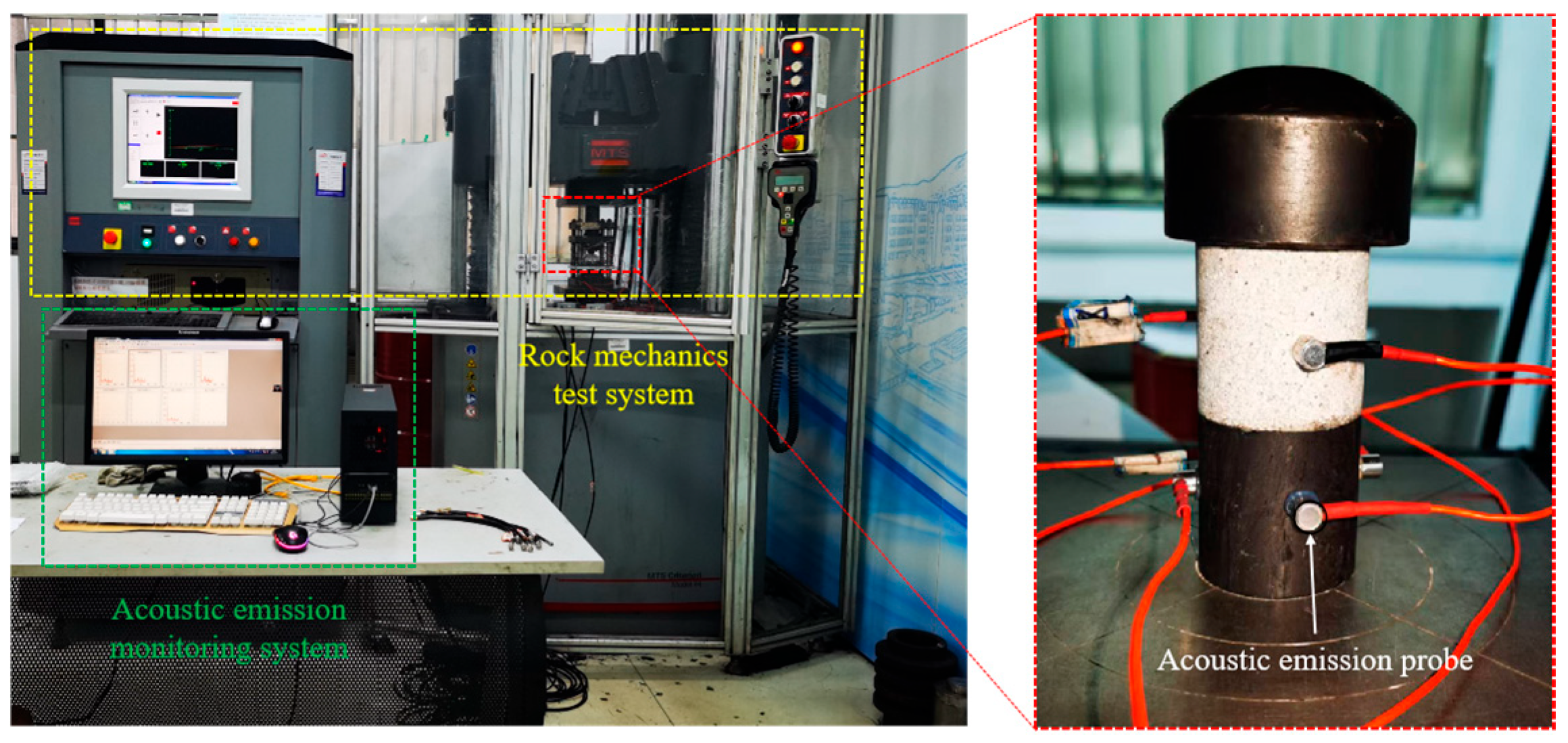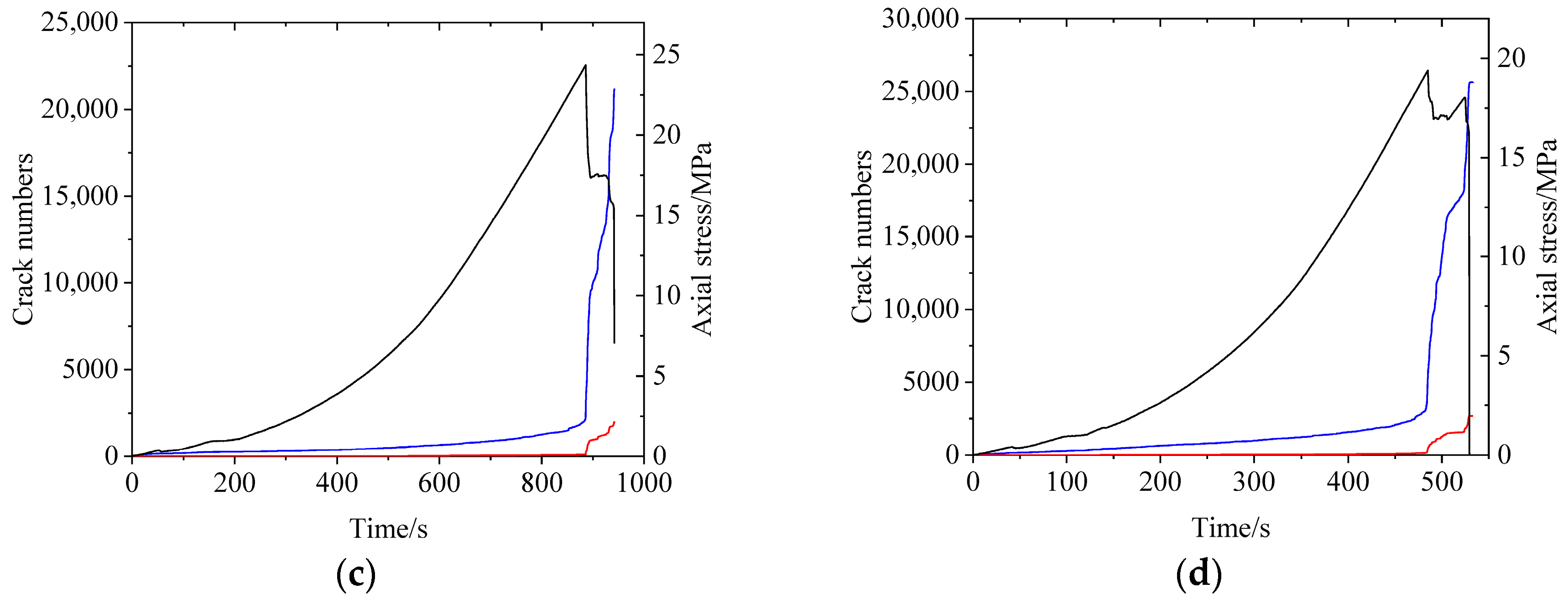 - Xiong, Z.Y.; Zhang, D.M.; Lu, J.; Wang, C.Y.; Chen, Y.; Zhang, Y. Mechanical behavior and acoustic emission characteristic response of Macaowan coal samples under different loading rates. Phys. Fluids 2025, 37, 027195. [Google Scholar] [CrossRef]