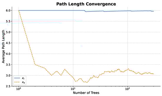 - Isolation Forest Parameters: For the anomaly scoring engine, we set the number of trees in the forest, T, to 100. As shown in the original Isolation Forest paper, the algorithm’s performance typically converges well before this point, making 100 trees a robust choice for stable performance []. The subsample size, , was set to 256, which is also a widely used default that provides high detection performance across a range of datasets by mitigating the effects of swamping and masking [].