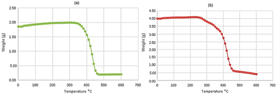 TGA graph of (a) pure PP and (b) CS/PP composite.
