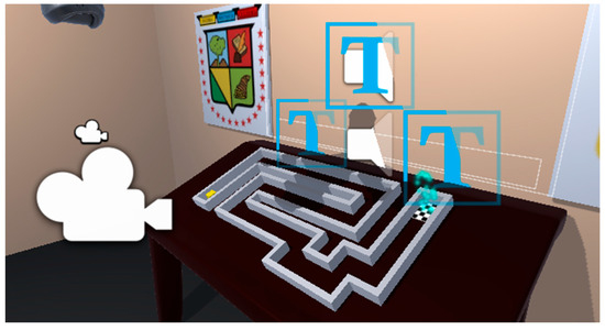 The accuracy test consisted of a virtual maze in which participants had to move an object without colliding with the walls, evaluating its ability to control and handle in a virtual environment (Figure 3). In case of touching the wall, it was necessary to restart the route until the route was completed without errors. In the precision test, the participants viewed the maze from a first-person perspective, allowing them to perceive depth and spatial relationships naturally within the immersive environment. The movable object, a virtual sphere with a diameter of approximately 15 cm, was scaled to occupy about one-third of the corridor width, maintaining a narrow clearance between the sphere and the maze walls to demand precise motor control.