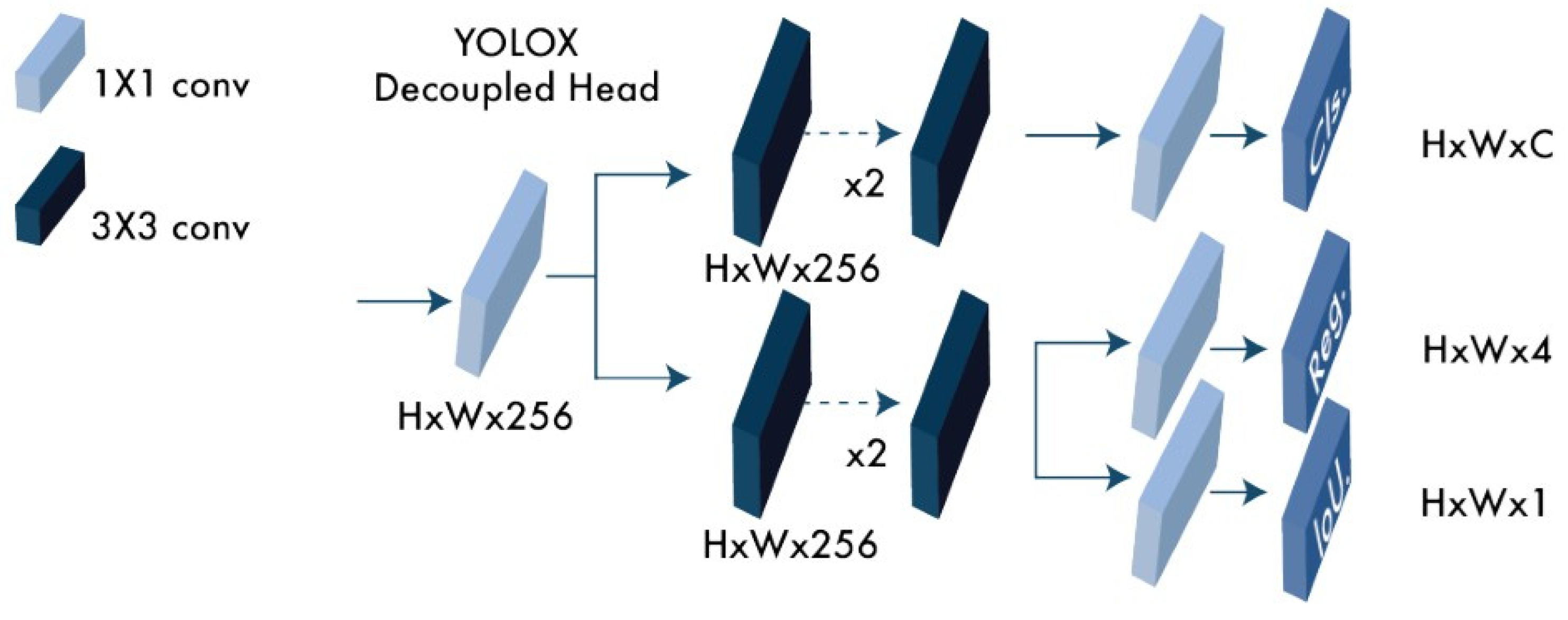 37]. The anchor-free architecture simplifies both training and decoding. One version of the YOLOX architectures is the lightweight YOLOX-Tiny model that has a small structure size with fewer parameters, requiring lower hardware conditions. Fundamentally, YOLOX-Tiny is based on a specialized deep learning algorithm that employs convolutional and residual networks. This type of model is suitable for low-end GPUs and is valuable for real-time, practical object detection applications. In this type of application, YoloX-Tiny with an input size of 448 × 448 was implemented on the Jetson Nano and Jetson NX platforms, achieving latencies of 38.89 ms and 10.68 ms, respectively [