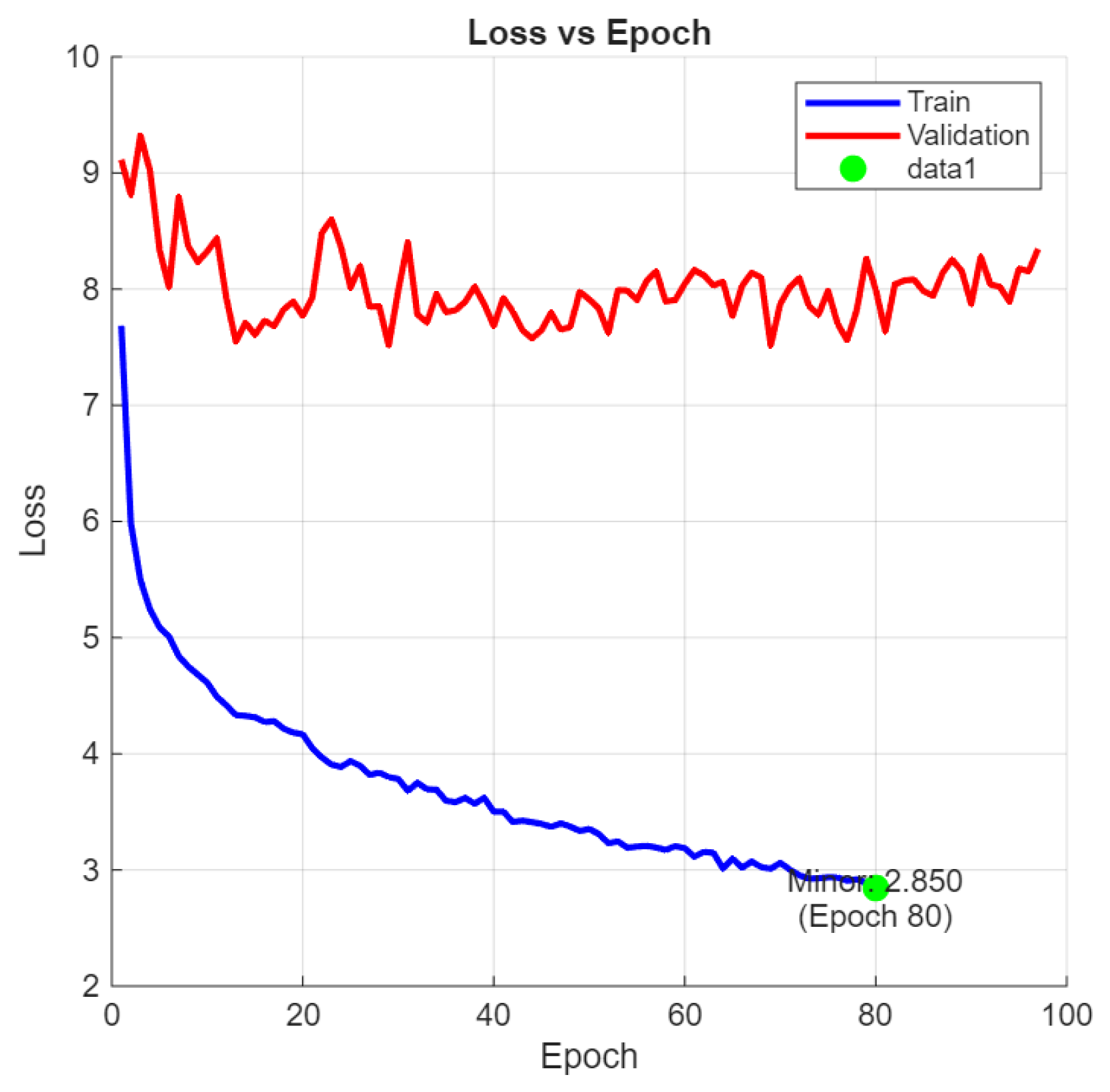 The experiments were performed with Matlab R2025a. To train and test the deep learning model, a machine with an Intel® Xeon multi-core processor with 16 GB DDR4/DDR5, a NVIDIA GeForce RTX 5090 GPU with 32 GB VRAM was used.