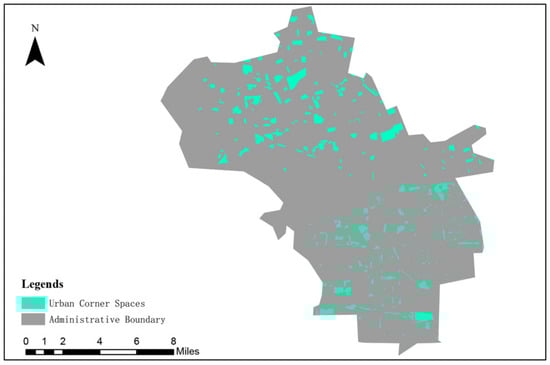 To save space, this study concentrates the site selection boundaries for parking facilities on urban fringe spaces. Urban fringe spaces refer to fragmented plots that have been marginalized due to factors such as terrain, land use patterns, or planning gaps, such as urban park green spaces, areas beneath overpasses, squares, and other idle areas. Considering the dual objectives of improving land use efficiency and minimizing disruption to residents, this study focuses the site selection range on such spaces. Based on this, and in line with national and local regulations on parking facility layout, spatial extraction and preliminary screening are performed using ArcGIS to identify candidate plots that meet the constraint conditions (Figure 5), forming the foundation for subsequent optimization analysis.
