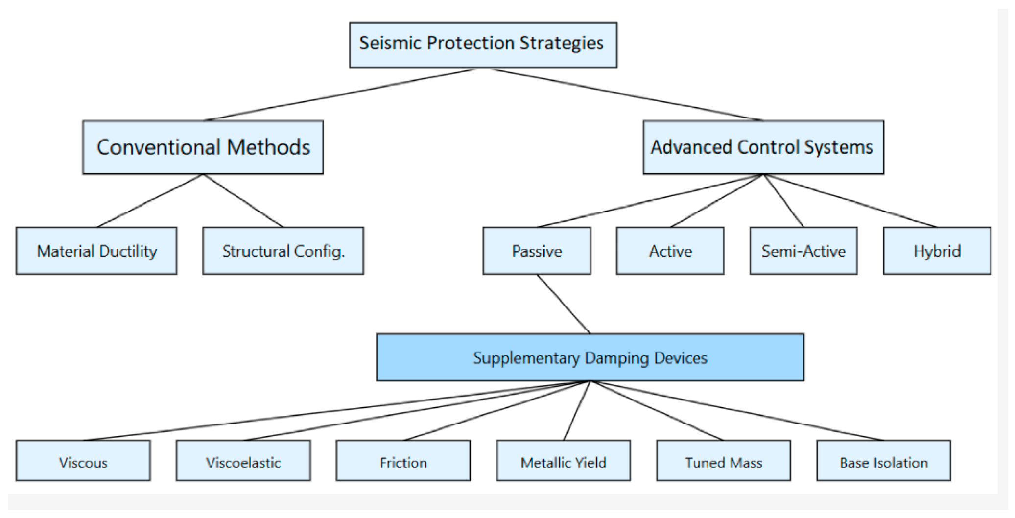 - Almajhali, K.Y.M.; Alhaddad, W. A systematic review of hybrid passive energy dissipating devices. Proc. Inst. Civ. Eng. Struct. Build. 2024, 1–43. [Google Scholar]