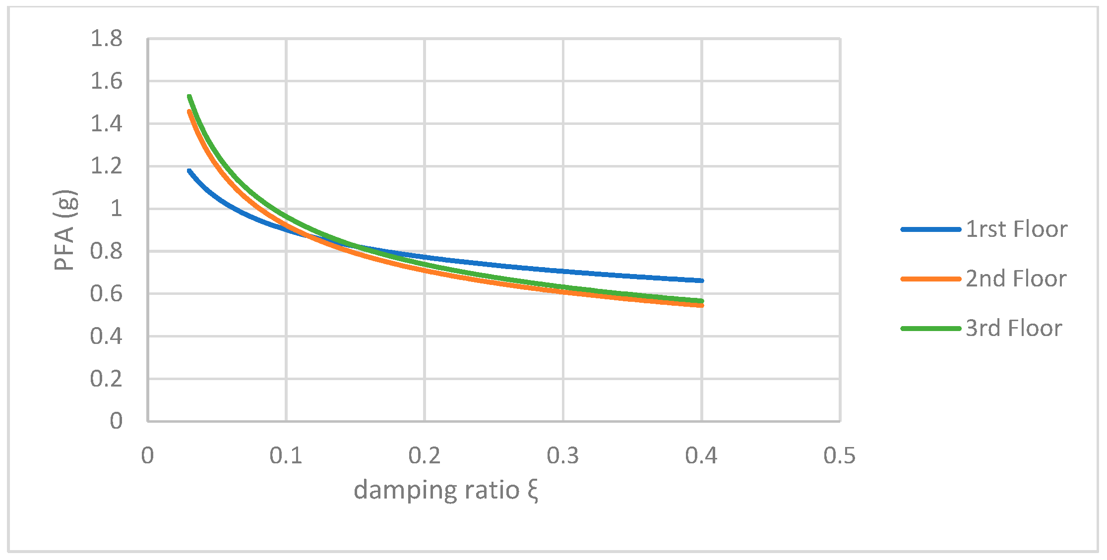 | Damping ratio (ξ)/PFA | PFA = 0.5395ξ−0.2228 | PFA = 0.3851ξ−0.3795 | PFA = 0.3985ξ−0.3833 | |