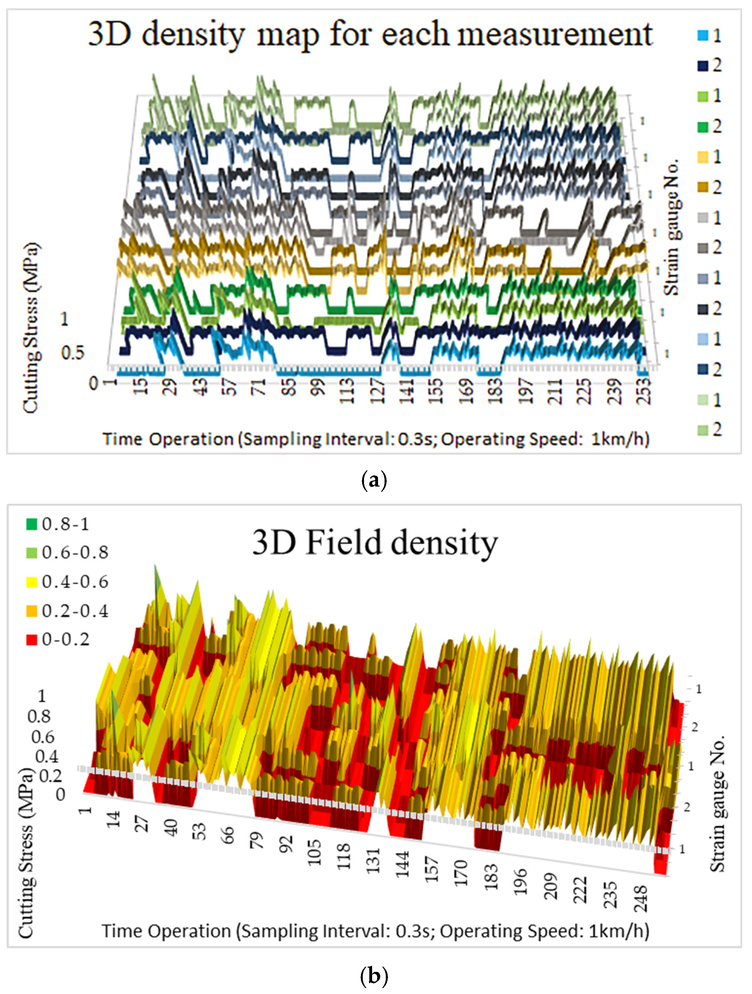 This method does not allow for the detection of small, compacted zones or the precise determination of their boundaries. Furthermore, it is not possible to obtain the value for compacted areas smaller than the working width of the implements. An alternative approach is to determine the resistance value for each individual working element; however, in practice, this is difficult to implement.